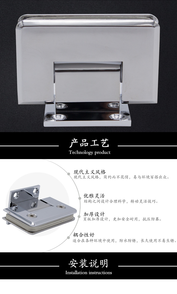 2、各种玻璃/木板隔断的固定.玻璃/木板可以与地面垂直也可以平行安装.适用于各种玻璃柜的固定连接.夹6-12mm玻璃
