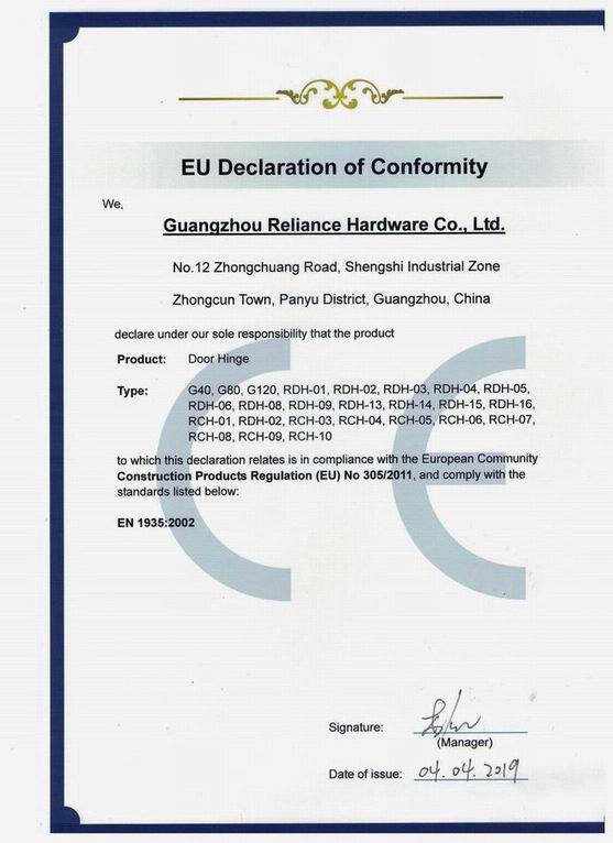 CERTIFICATE Of Door Hinge